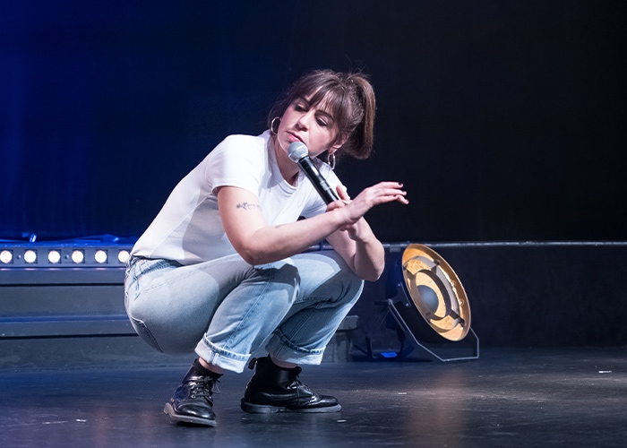 Ce spectacle c’est comme un petit personnage de bd qui passerait de bulle en bulle sans jamais trouver de siège libre pour son fessier, sans trouver sa place. À force de rester debout elle a fait du stand up. Et vous a trouvés, vous. Un moment de scène où elle se livre, à fleur de pot de départ.