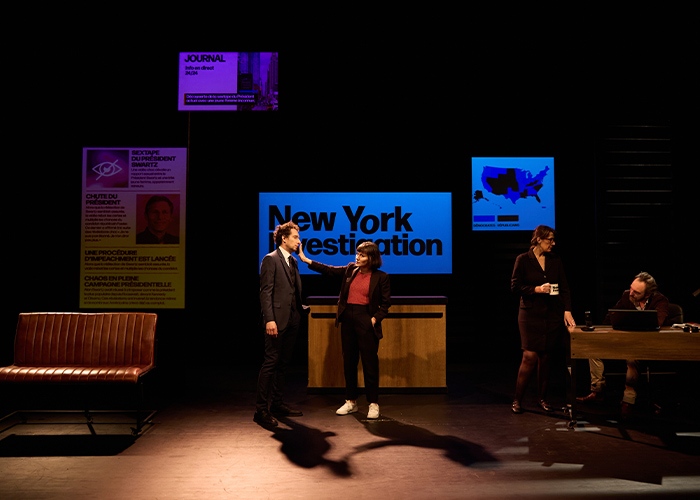 “ Un thriller psychologico-politique aussi captivant et haletant qu’une série américaine. D’autant plus qu’elle ponctue la mise en scène de fl ashback qui reconstituent le parcours des protagonistes. Sur la scène du Théâtre des Béliers parisiens, la direction d’acteurs ne laisse aucun répit, ni à sa troupe, ni au public. On a juste le temps de s’attacher aux personnages et à leurs amours avant un fi nal coup-de-poing. “ LE FIGARO
